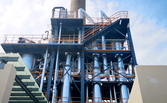 三效蒸(zhēng)發器用作蒸發器中的一種,主要(yào)有三個蒸發器組合而成、三效蒸發器運行流程(chéng)中,需要(yào)控製後(hòu)效的壓強和(hé)沸點,一般越往後的溶液壓強、沸(fèi)點越低,利用二次蒸汽和鮮蒸汽混(hún)合後用作換熱介質,給設備提供換熱。