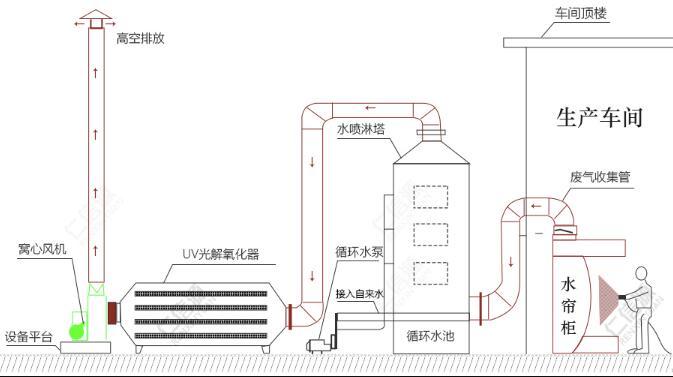 當廢氣進入到UV光氧催化器內部時,需通(tōng)過較長的通過時間,需1.5S,經過紫外線的照射,使廢氣分(fèn)子分解,發生化學反應,物質在紫外線照射下吸收光線當(dāng)中攜帶的能量成激發態,從而發生—係列光化學(xué)反應,最終變成無害的低分(fèn)子化合物(wù),實現低汙染排放。