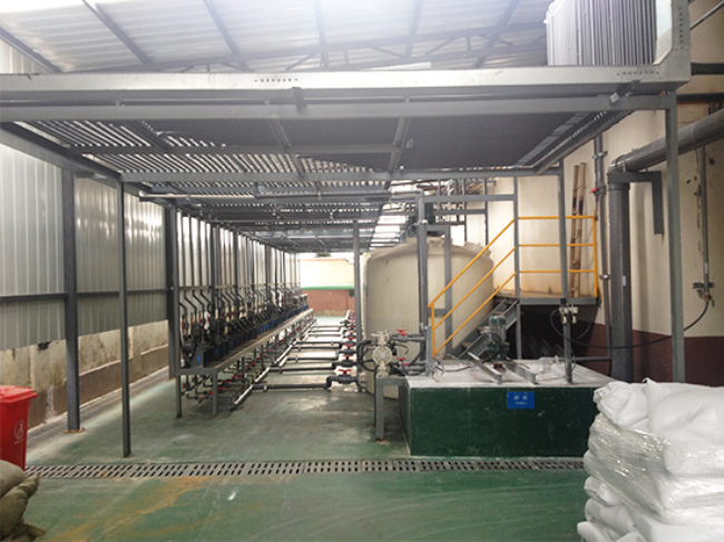 我公司為該企業承建廢水電(diàn)化學催化氧化預處理係統,設(shè)計(jì)廢水水量600T/D,其廢水先經電化(huà)學催化氧化處理再進入生化處理,之後達(dá)標排(pái)放,目前運(yùn)行穩定。